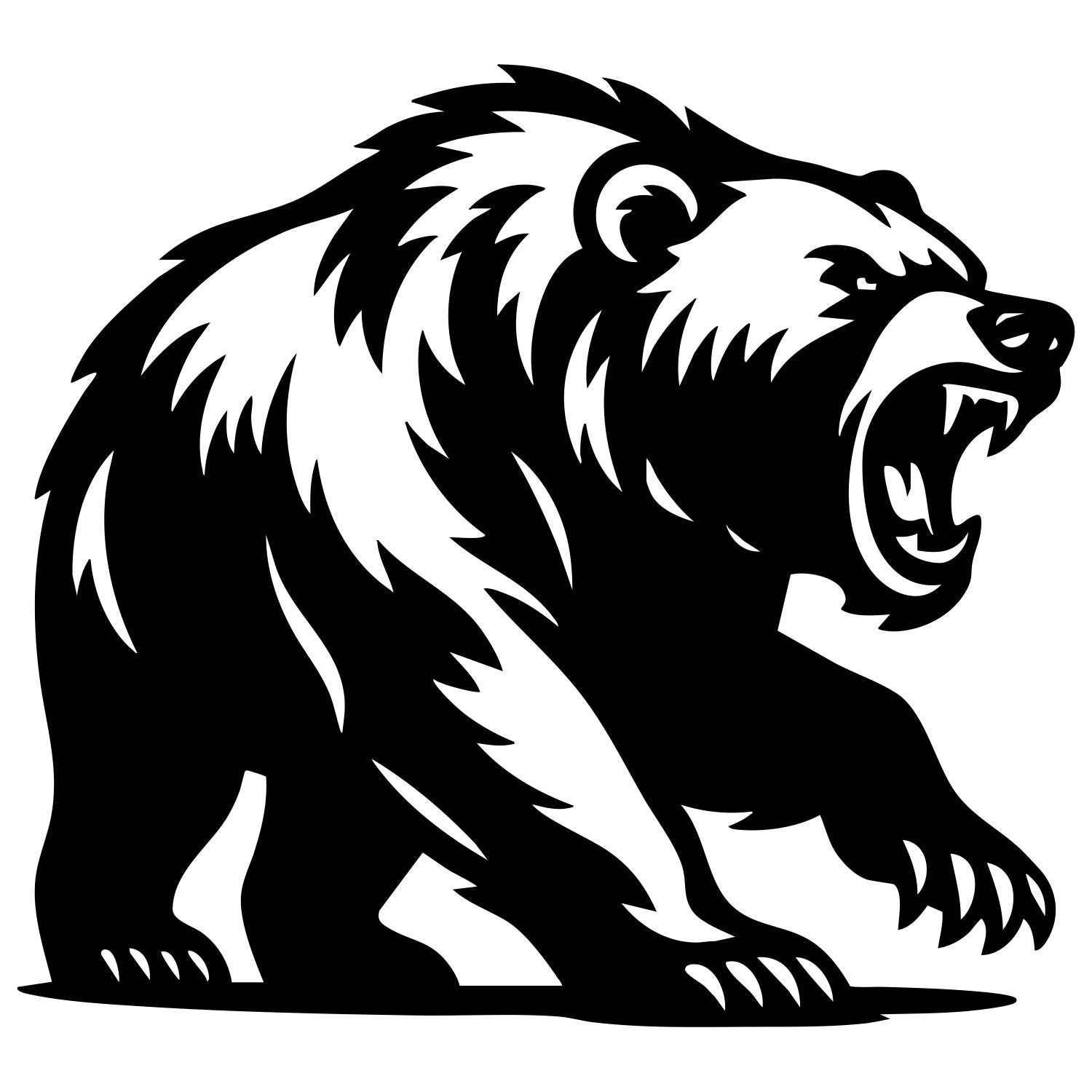 Angry grizzly bear DXF file for CNC cutting design – Bear outline for laser and plasma projects; multi-format vector files, CNC cut design instant download