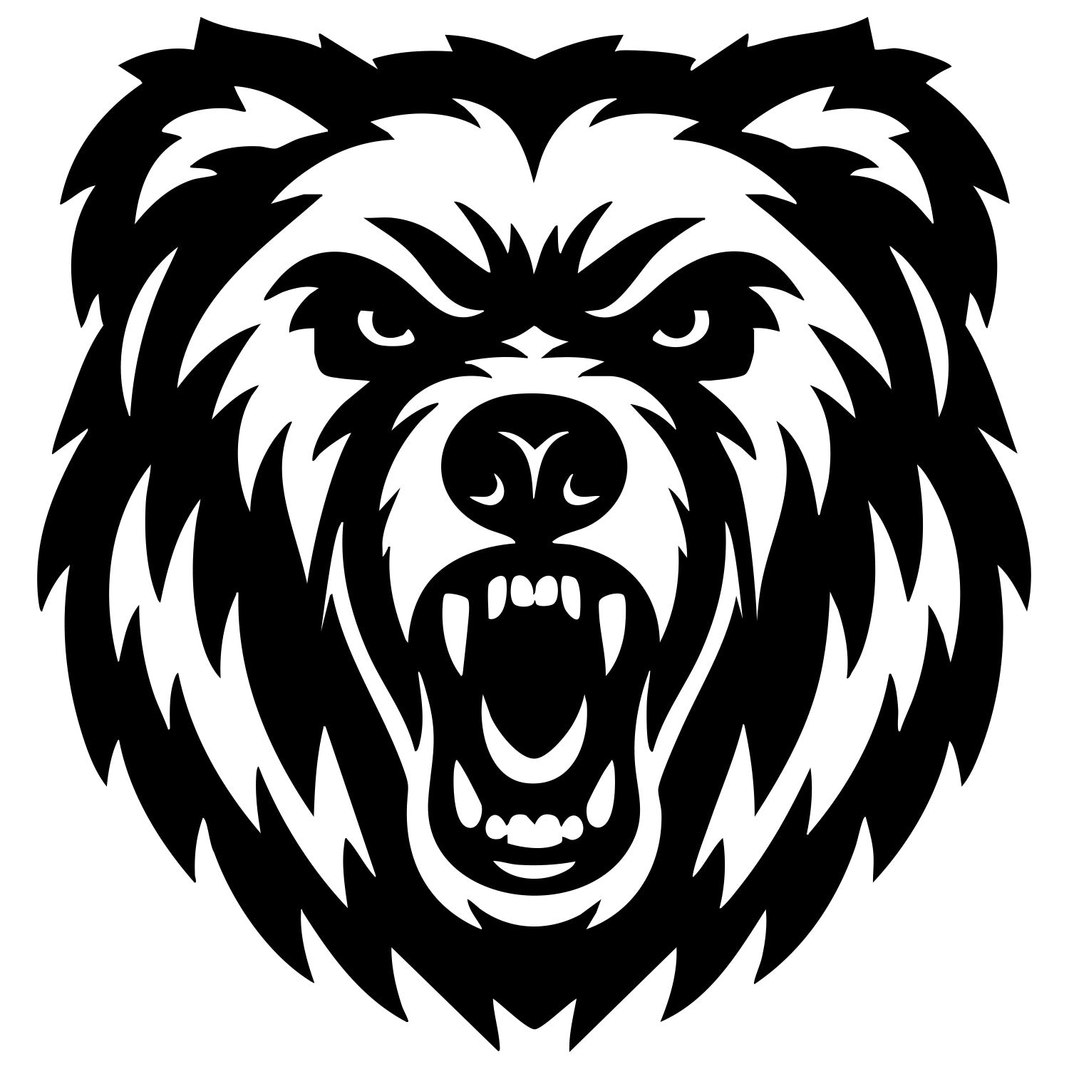 Angry grizzly bear head DXF file for CNC cutting design – Bear head outline for laser and plasma projects; multi-format vector files, CNC cut design instant download