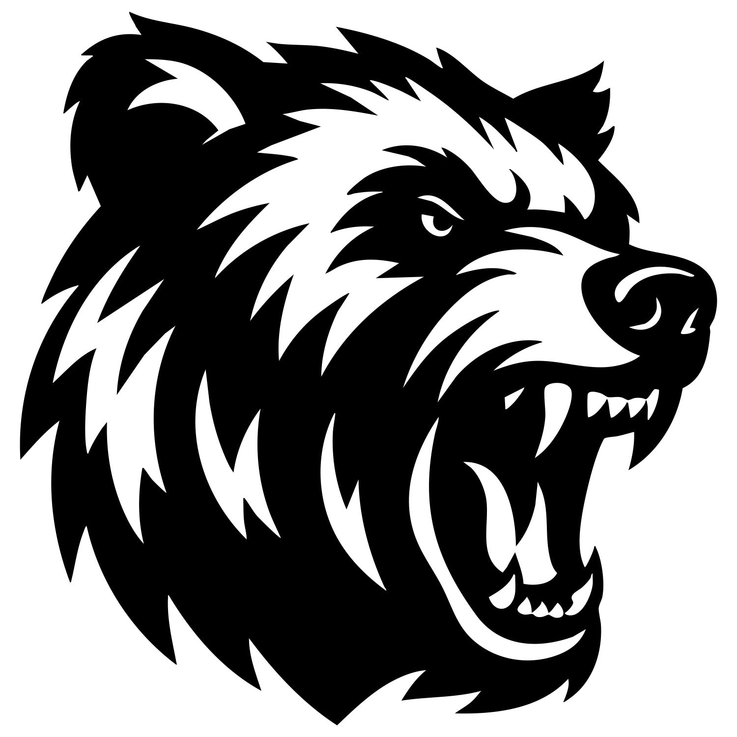 Angry grizzly bear head DXF file for CNC cutting design – Bear head outline for laser and plasma projects; multi-format vector files, CNC cut design instant download
