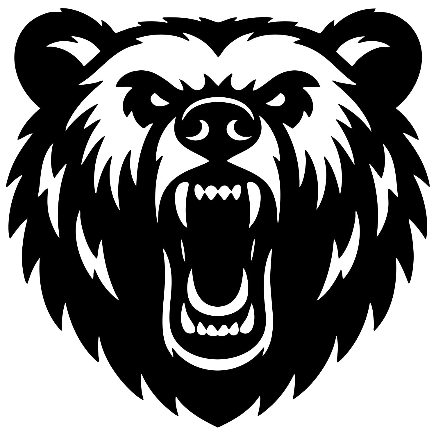 Angry grizzly bear head DXF file for CNC cutting design – Bear head outline for laser and plasma projects; multi-format vector files, CNC cut design instant download