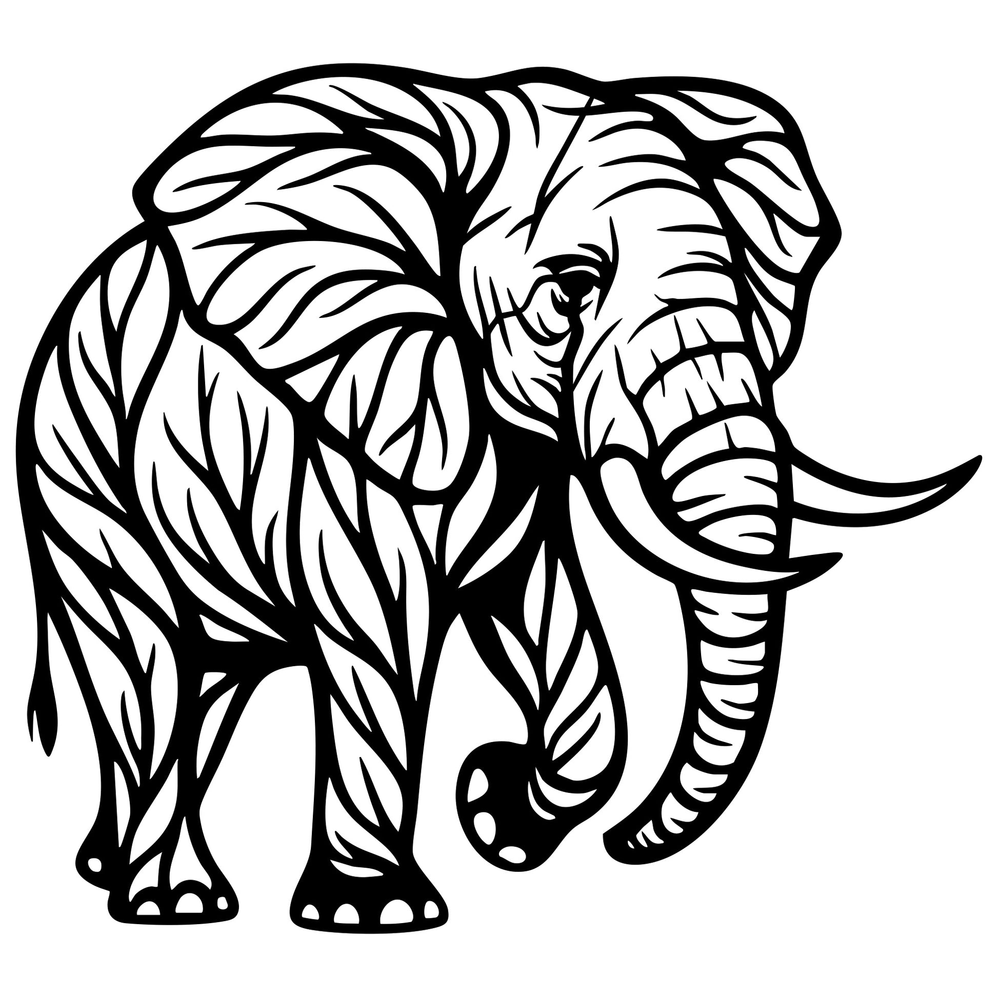 Elephant tree DXF file for CNC cutting design – Elephant outline for laser and plasma projects; multi-format vector files, CNC cut design instant download