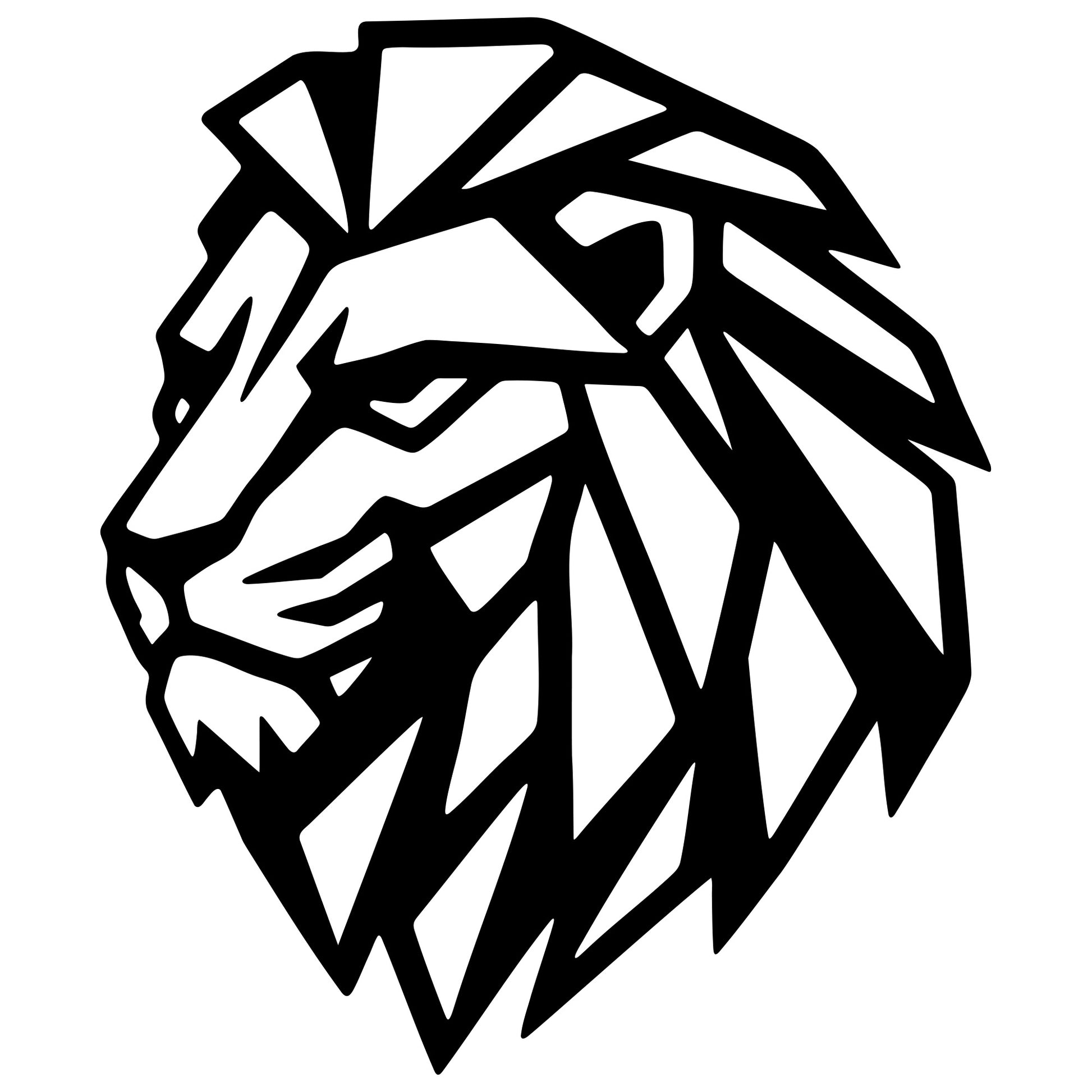 Geometric lion head DXF file for CNC cutting design – Lion head outline for laser and plasma projects; multi-format vector files, CNC cut design instant download