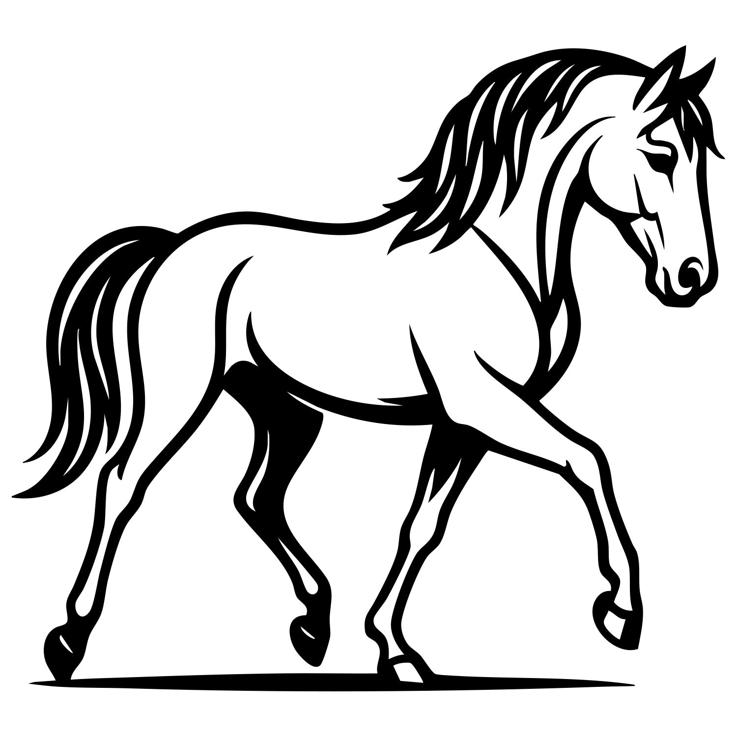 Horse DXF file for CNC cutting design – horse outline for laser and plasma projects; multi-format vector files, CNC cut design instant download