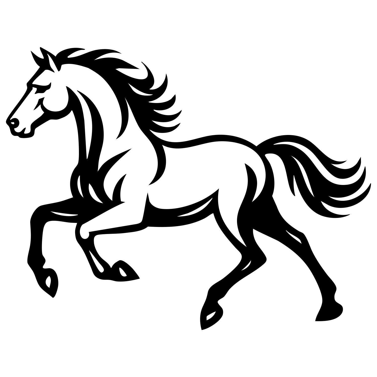 Horse DXF file for CNC cutting design – horse outline for laser and plasma projects; multi-format vector files, CNC cut design instant download