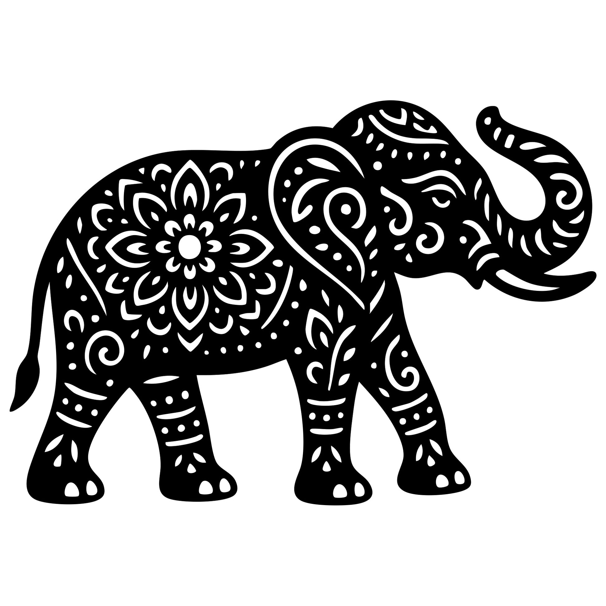 Mandala Elephant DXF file for CNC cutting design – Elephant outline for laser and plasma projects; multi-format vector files, CNC cut design instant download