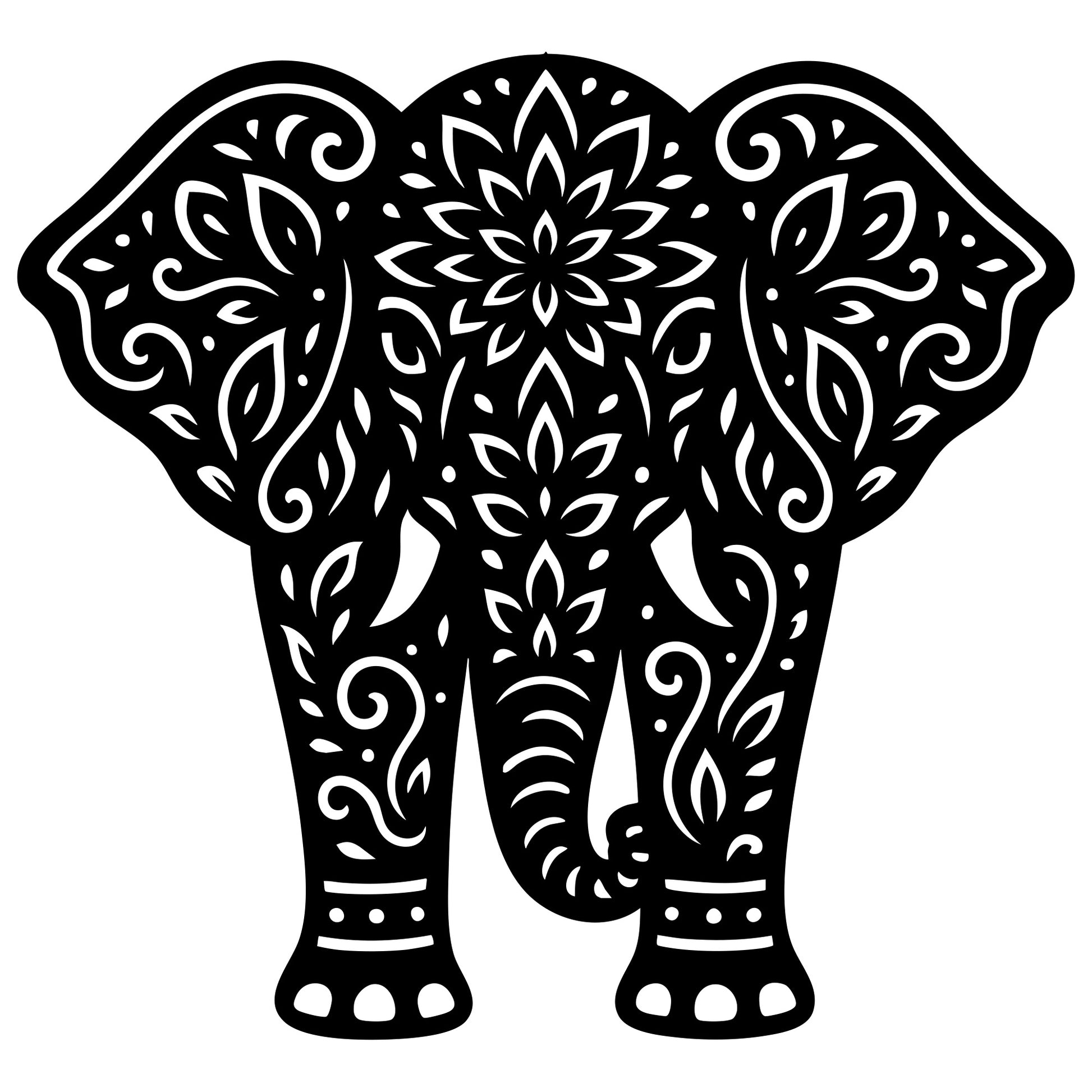 Mandala Elephant DXF file for CNC cutting design – Elephant outline for laser and plasma projects; multi-format vector files, CNC cut design instant download