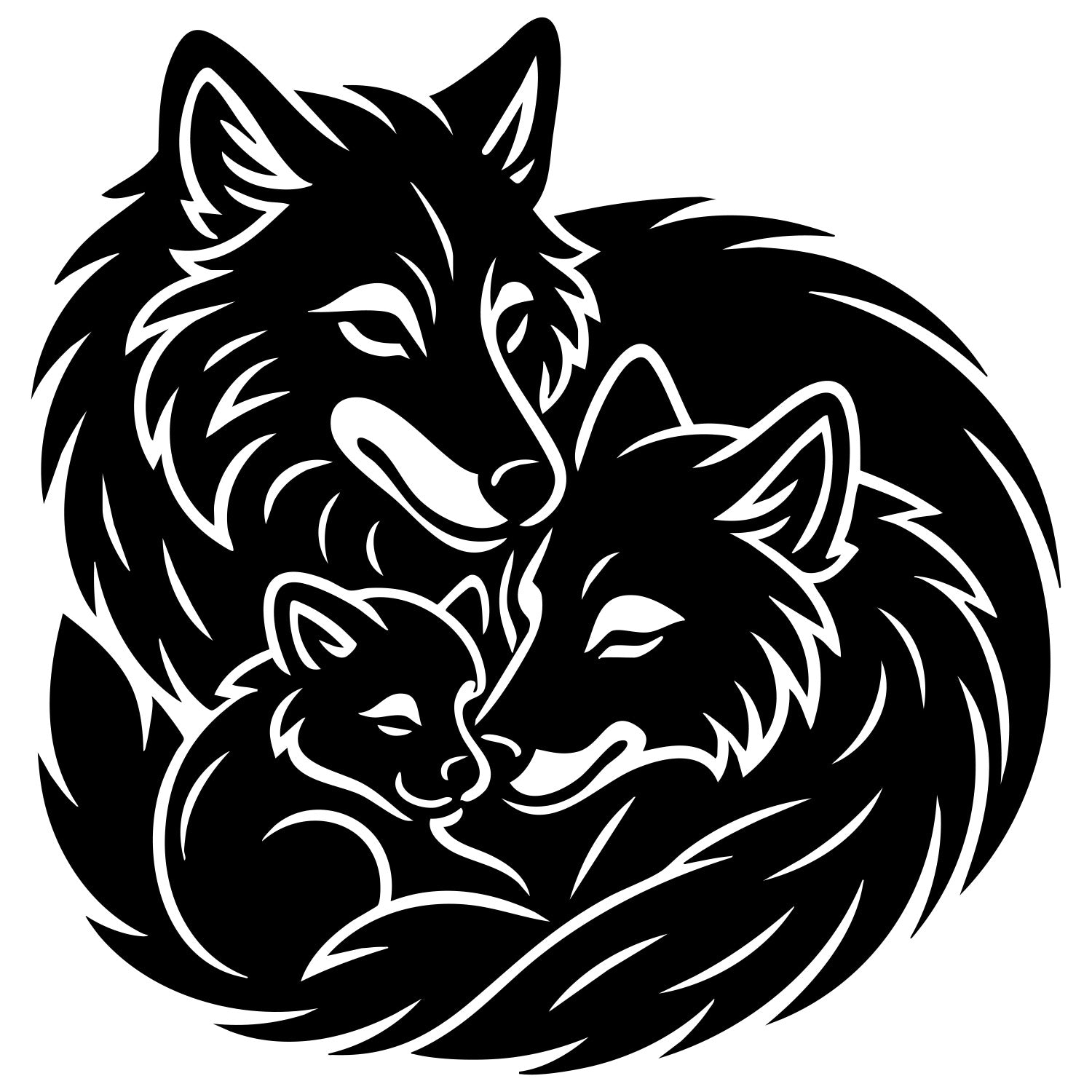 Tribal Wolf Family DXF File – CNC Cutting Design | AWWOLF193
